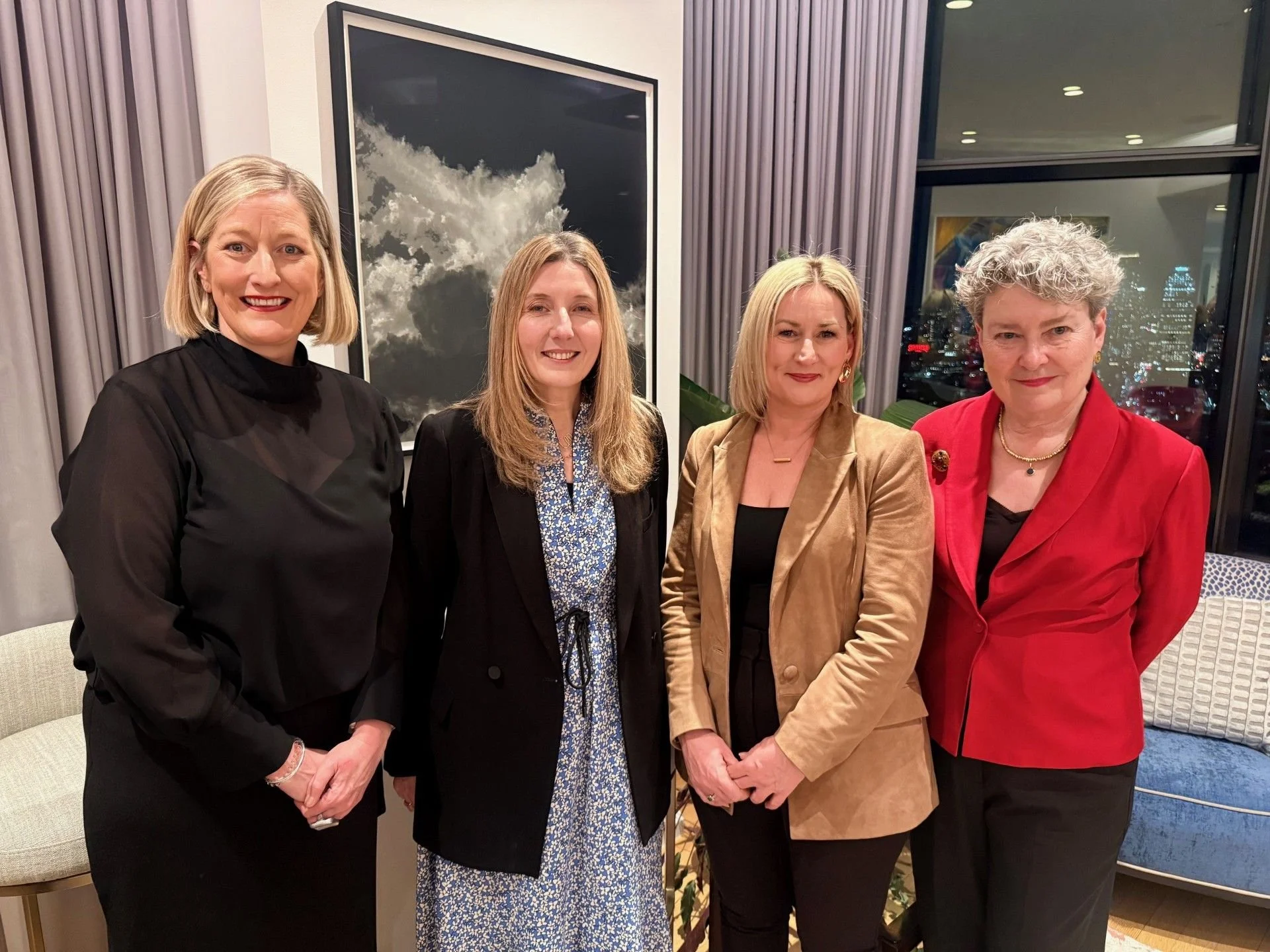 CAPTION: Pictured at the announcement of the new global partnership between WIN Women in Innovation and AwakenAngels, Ireland's only women-led investment syndicate and community, are L to R: Denise McQuaid, Cofounder and Director of Investor Relations, AwakenAngels; Chloe Alana Williams, lead of WIN’s London chapter and author of the Hidden Women Report; Clare McGee, Cofounder and CEO, Clare McGee; and Mary Ann Pierce, Global Ambassador, AwakenHub. The new partnership was announced in New York at a reception at the British Consul General’s residence, attended by senior diplomatic representatives, including Deputy Irish Consul General Roisin Leonard and Deputy British Consul General Mel Lawrence.